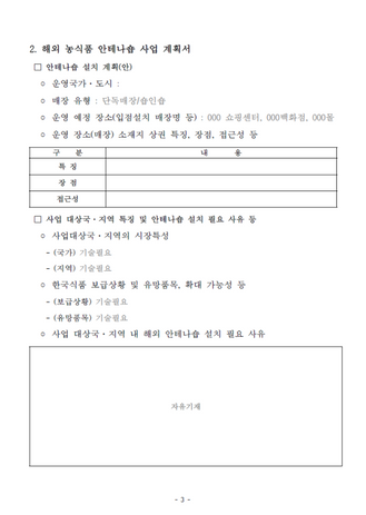 농림축산식품부와 한국농수산식품유통공사(aT)에서는 차년도 해외 안테나숍 예비 운영희망주체 모집을 위한 수요조사를 실시하고자 하오니 관심업체는 신청하여 주시기 바랍니다.